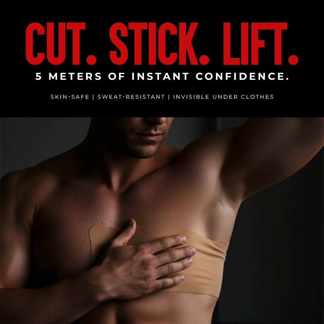 Look sharper in any T-shirt. ALPHA Tape instantly reduces the appearance of gyno and puffy nipples, giving you a clean, flat chest without compression vests or surgery.